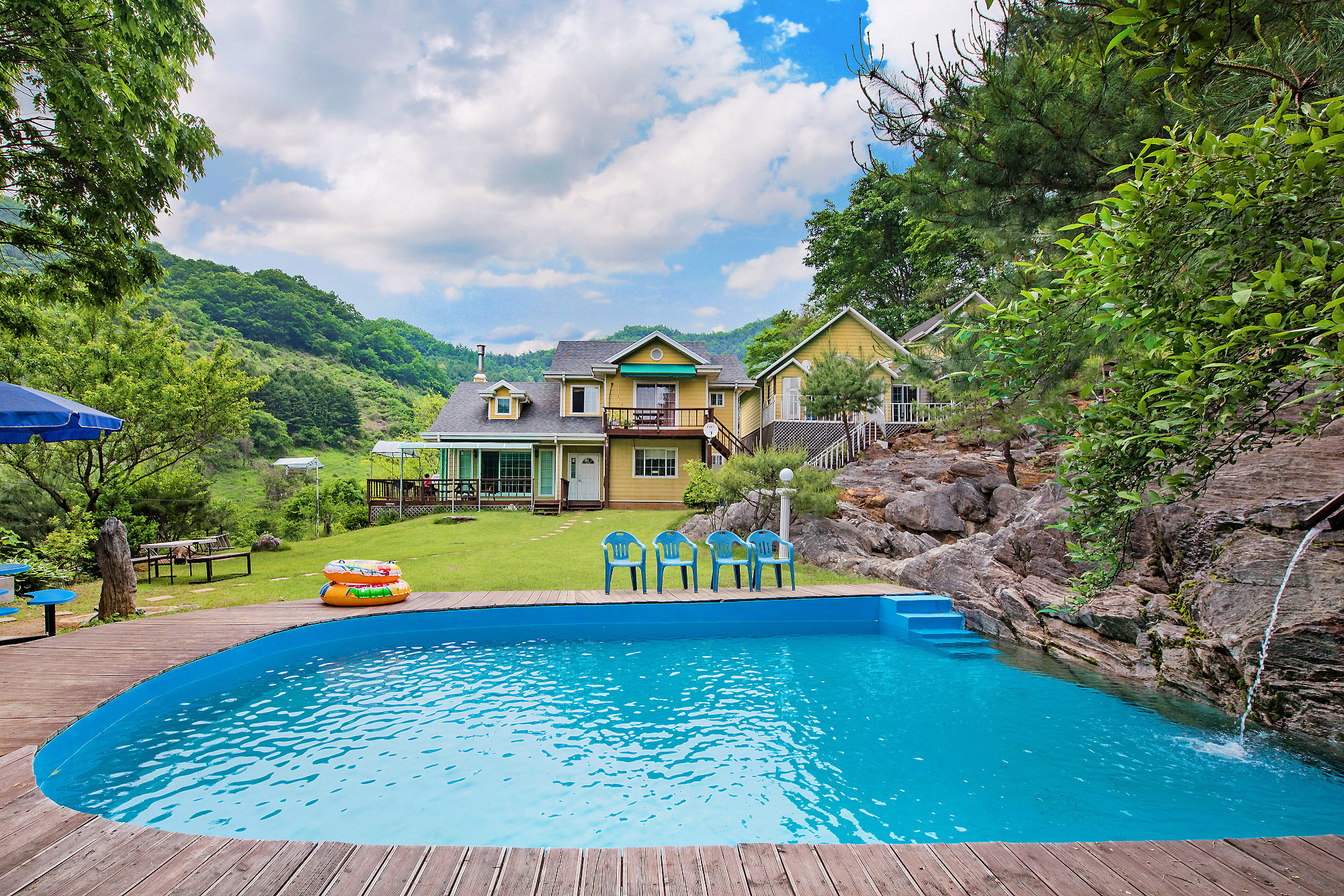 별빛언덕펜션에 아담한 야외수영장이 있습니다. 펜션 수영장에서 시원한 여름을 즐기세요~